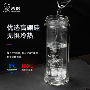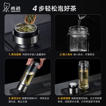 希诺双层玻璃杯男茶水分离杯高档泡茶杯子车载水杯XN-9339黑色 340mL