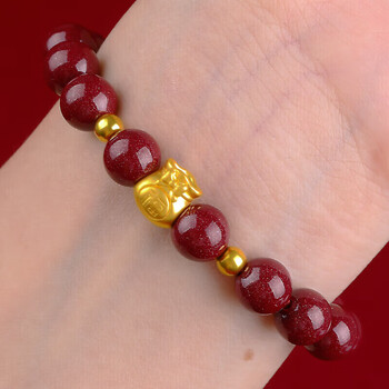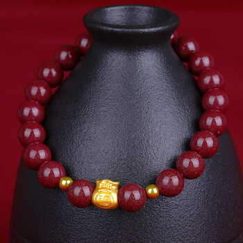 石玥珠宝高含量8mm紫金朱砂手串黄金福袋本命年护身符手链男女士款礼物