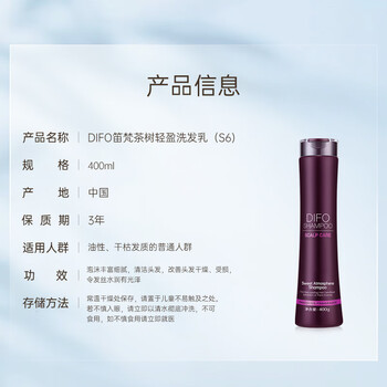 笛梵(DIFO)控油去屑止痒洗发水留香持久香氛洗发乳茶树强根400ml热门商品17