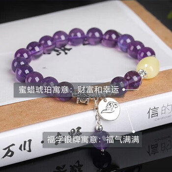 妍韵珠宝8mm精品紫水晶手链S925银福蜜蜡九紫离火天然紫水晶手串男女士款
