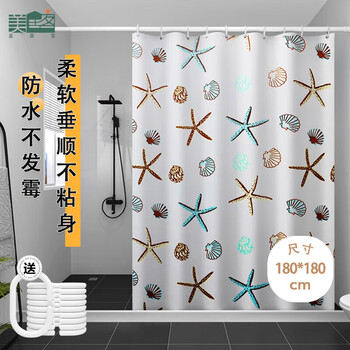 美居客干湿分离浴帘 海贝星加厚加宽PEVA防水挂帘浴室隔断帘1.8*1.8M
