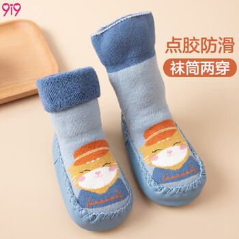 9i9宝宝地板袜婴儿学步袜春秋儿童地板鞋厚底隔凉内长约12.5猫咪