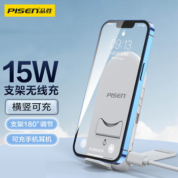 品胜苹果无线充电器 桌面立式充电底座支架 适用iPhone17air/pro/16/15小米华为P70手机Airpods耳机15W