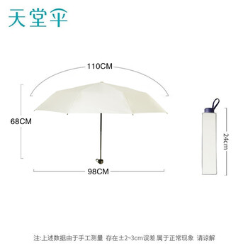 天堂 防紫外线晴雨伞三折黑胶防晒太阳伞遮阳伞55*8骨 纯色甘酪白