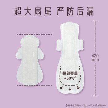 她研社奶滑小方绵柔卫生巾超长夜用420mm4片加大尾扇姨妈巾京东自营
