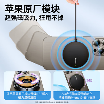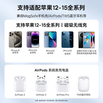 倍思苹果无线充电器iPhone17ProMax支持Magsafe磁吸快充 适用苹果17/16/15华为手机AirPods耳机 白