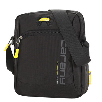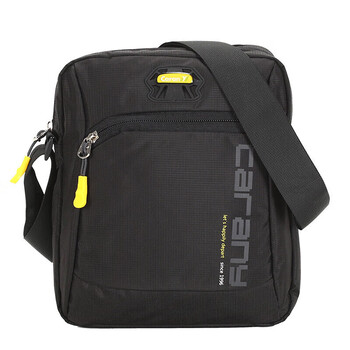 卡拉羊休闲运动包单肩包斜挎包男士帆布包超轻竖款潮流胸包旅行便携黑色