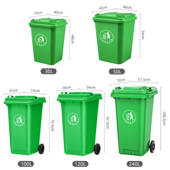 极地之光加厚物业小区公用室外环保分类塑料舒蔻带盖环卫户外垃圾桶 大号商用绿色带轮100L