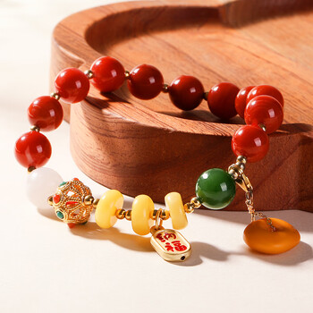 豆蔻时光9mm凉山南红玛瑙手串 配碧玉蜜蜡平安扣水晶手链女士款