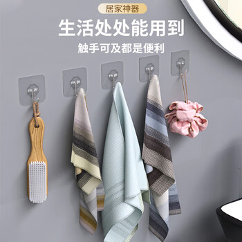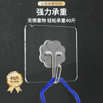 秉优 挂钩(80丝加厚)20个强力粘钩 无痕透明厨房浴室免打孔免钉贴衣钩