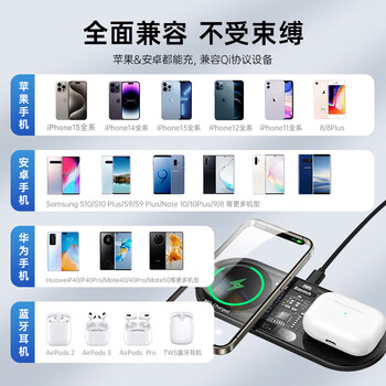 倍思无线充电器二合一苹果充电板数显快充20W适用iPhone17/16/1514/13/12/11ProMax小米华为耳机手机