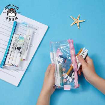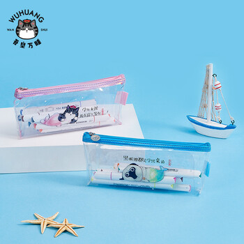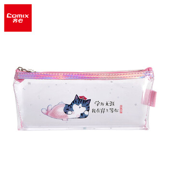 齐心(Comix)吾皇万睡 小学生笔袋 透明笔袋大容量文具盒 轻盈防水 单个装WHA3201