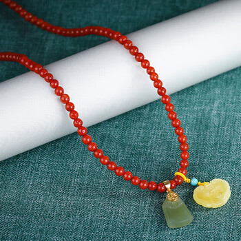 豆蔻时光4.5-5mm南红玛瑙手串平安无事琥珀福锁多圈水晶手链女士款