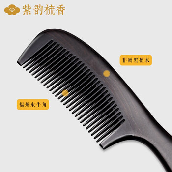 紫韵梳香 榫卯黑檀木牛角梳子女士男士38女神三八妇女节礼物女生送妈妈M-1