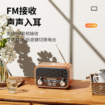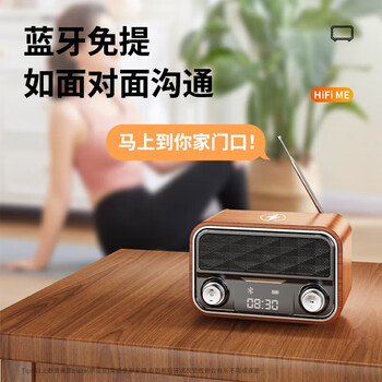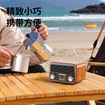 毕亚兹 适用于手机无线充电器 复古迷你音响 无线蓝牙音箱收音机小音响大功率播放器 木纹色复古蓝牙音箱
