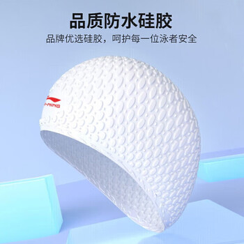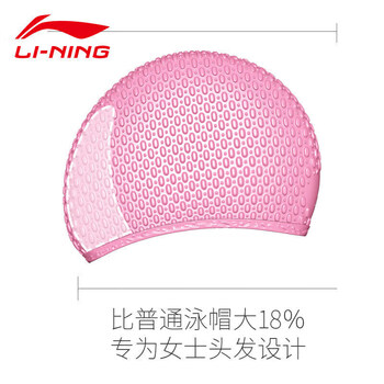 李宁(LI-NING)泳帽女士长发硅胶防水帽凹凸防滑颗粒游泳帽时尚游泳装备8189浅粉