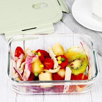 德玛斯耐热玻璃保鲜盒微波炉饭盒冰箱收纳上班族便当碗 北欧绿长1000ml
