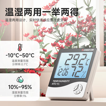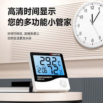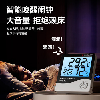 志高(CHIGO)温度计室内 家用温湿度计高精度电子室温计时钟干湿温度计 HTC-1S