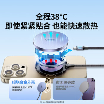 绿联【适用iPhone17】无线充电器MagSafe磁吸快充苹果16/15/14/13ProMax/PLUS手机耳机桌面充电板