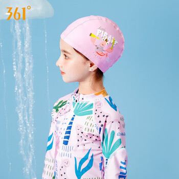 361°儿童游泳PU帽运动男女时尚可爱卡通防水舒适不勒头游泳帽 粉色