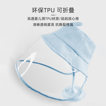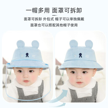 9i9婴儿防护帽子渔夫帽宝宝盆帽遮阳帽防飞沫面罩可拆卸防风A385