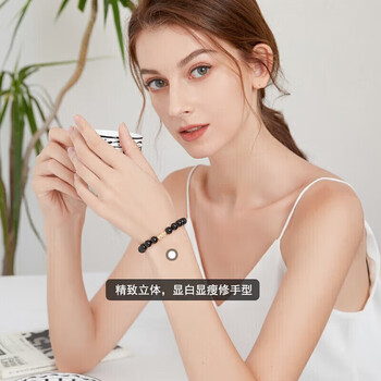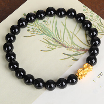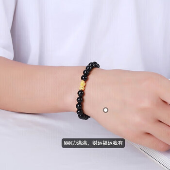 石玥珠宝精品8mm黑玛瑙手串本命年护身符黄金貔貅转运珠水晶手链男女士款