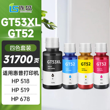 连盛GT53XL/GT52墨水 适用惠普HP Tank518 519 678 510 538 418 516 511 411 530 582 755 5100打印机墨盒墨水
