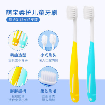 朗利洁儿童牙刷萌宝柔护软毛宝宝牙刷3-12岁2支装细软毛小刷头呵护牙齿