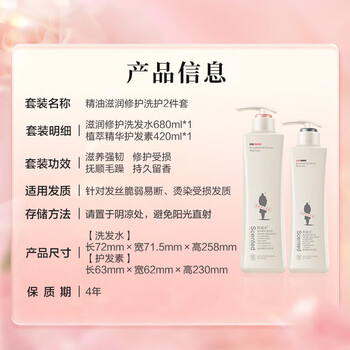 阿道夫滋润修护洗护套装 洗发水680ml+护发素420ml 精油香氛洗发露