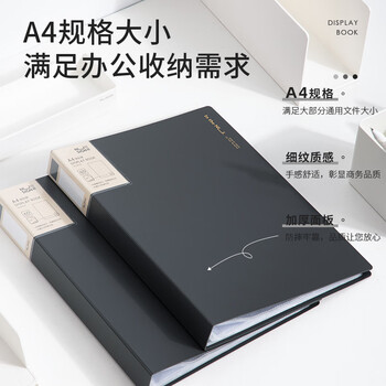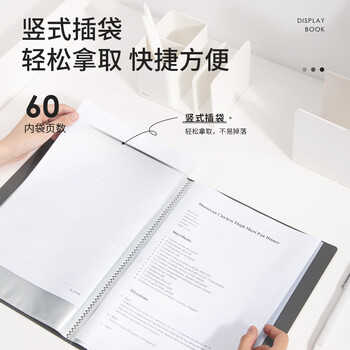 得力(deli)NS192 纽赛A4透明试卷夹档案文件夹插页袋60页编码资料册报告单文件收纳册学生办公 深灰色 12本装