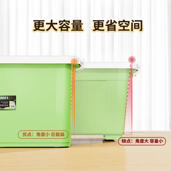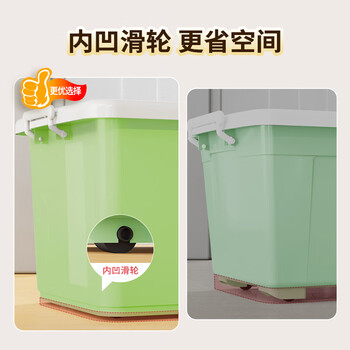清野の木 衣物收纳箱特大号塑料整理箱110L绿色 1个装 带轮
