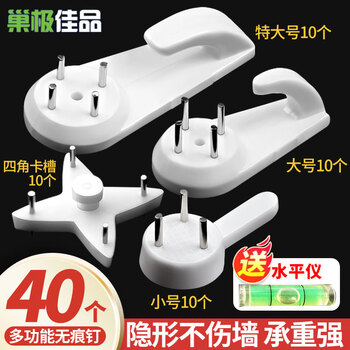 生活日用---浴室/置物用品---粘钩/挂钩巢极佳品强力隐形无痕钉 婚纱照装饰品相框挂墙挂钩套装 免打孔挂画墙钉【送水平仪】 大小中号40个装
