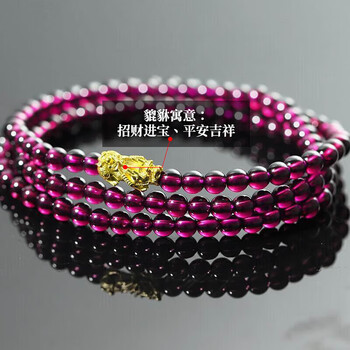 珠宝首饰---水晶/玛瑙/朱砂---手镯/手链/脚链石玥珠宝(SHIYUEZHUBAO)5mm黄金貔貅紫牙乌石榴石手链