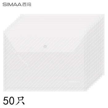西玛(SIMAA)50只装 A4按扣学生透明文件袋 条纹加厚 防水试卷资料收纳袋 办公文件档案袋 文具 20562