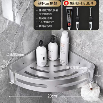 馨沛太空铝浴室置物架免打孔卫生间转角墙角淋浴房厕所三角架篮收纳架