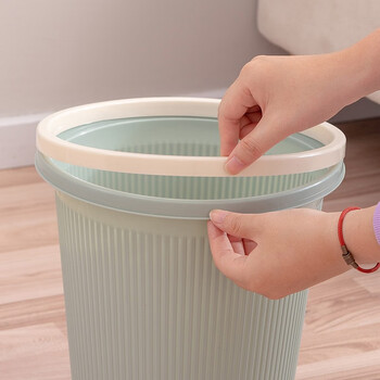 欧润哲 垃圾桶 厨房客厅浴室分类垃圾桶10L压圈竖纹办公室垃圾篓蓝色