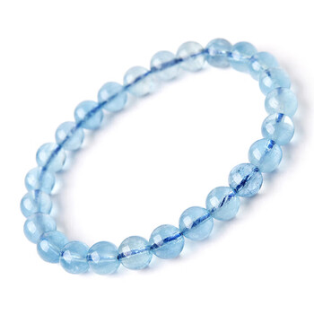 灵菲精品海蓝宝手链男女生水晶手串情侣生日礼物7mm证书