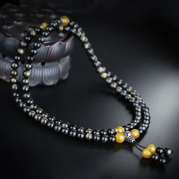 珠宝首饰---水晶/玛瑙/朱砂---手镯/手链/脚链石玥珠宝(SHIYUEZHUBAO)6mm金沙天然黑曜石虎眼石手串