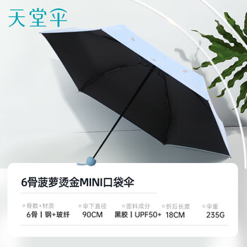 天堂 防紫外线阳伞五折 遮阳伞五折太阳伞印花黑胶防晒伞 灰蓝