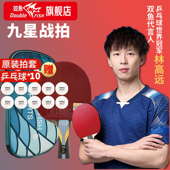 双鱼乒乓球拍横拍长柄 9星九星无极蓝海绵双面反胶兵乓球拍 附拍套