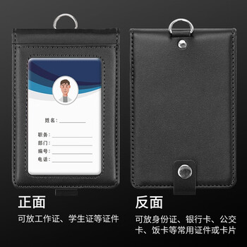 嘉然恒真皮工作牌企业员工胸牌证件卡套带收纳卡位挂脖牌会议出入证工作证套牛皮材质可定制 黑色