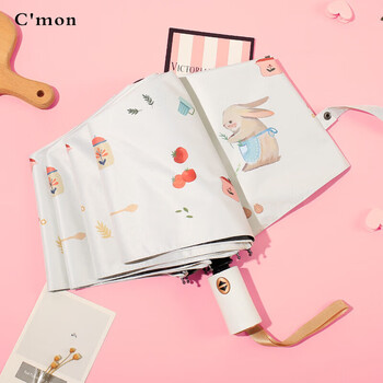 C'mon 全自动晴雨伞三折防晒遮阳伞太阳伞女防紫外线 兔子厨房自动伞