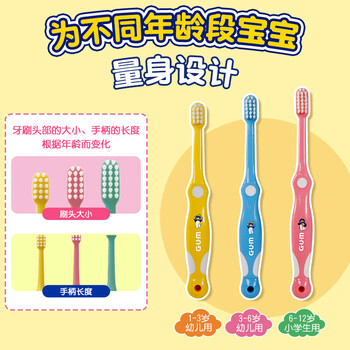 G·U·M康齿家小企鹅儿童牙刷抑菌软毛(6-12岁适用)2支套装颜色随机