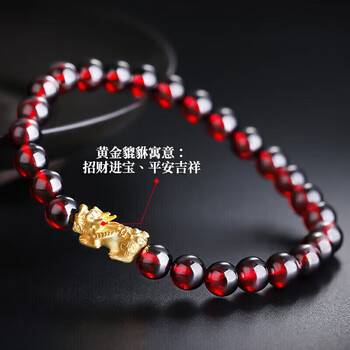 珠宝首饰---水晶/玛瑙/朱砂---手镯/手链/脚链石玥珠宝(SHIYUEZHUBAO)精品6-7mm石榴石手链黄金貔貅