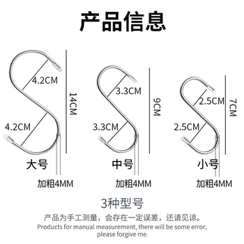 秉优 不锈钢S钩加粗4.2mm肉钩7厘米*14