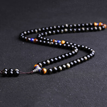 石玥珠宝精品8mm金沙天然黑曜石手串银莲花青金石虎眼石水晶手链男女士款