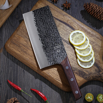 十八子作传统手工锻打菜刀紫檀木刀具本源斩切刀S2105-AB【彩盒装】