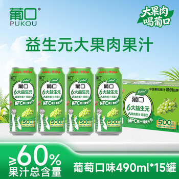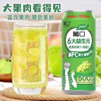 葡口果肉饮料含NFC原果汁新鲜葡萄味爽口聚餐游玩火锅烧烤490ml*15罐