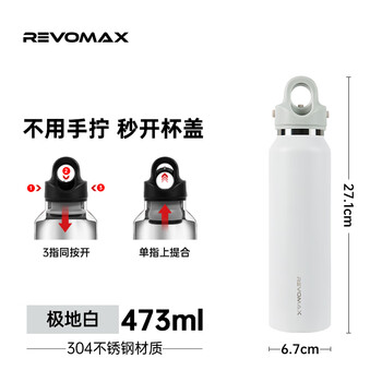REVOMAX锐虎无螺纹保温杯男女学生儿童保温杯上学专用喝水杯极地白473ml