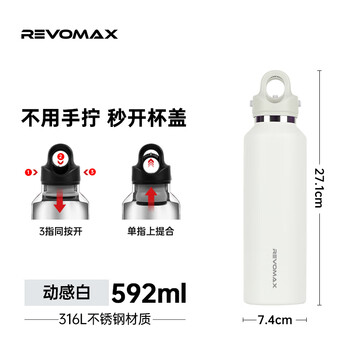 REVOMAX保温杯女士高颜值2026新款直饮杯316不锈钢水杯子【可碳酸/动感白